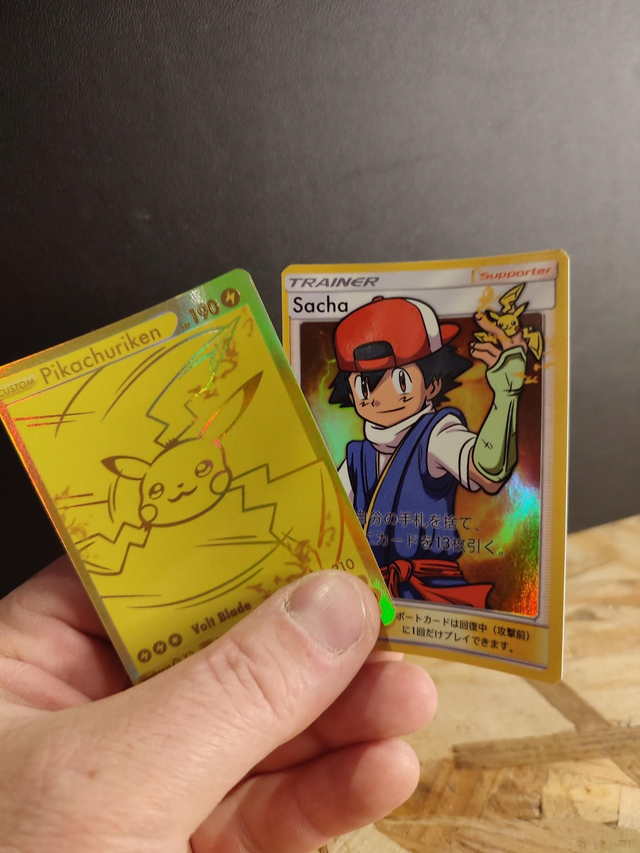 Avec tu auras aussi le certificat d'authenticité ainsi que deux cartes Pokéblade Sacha et Pikachuriken( collector aussi éditer a 100 exemplaires chacunes ) !